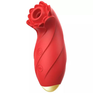 The Ultimate Rose Extend double-sided vibrator in red with rose-shaped licking tip